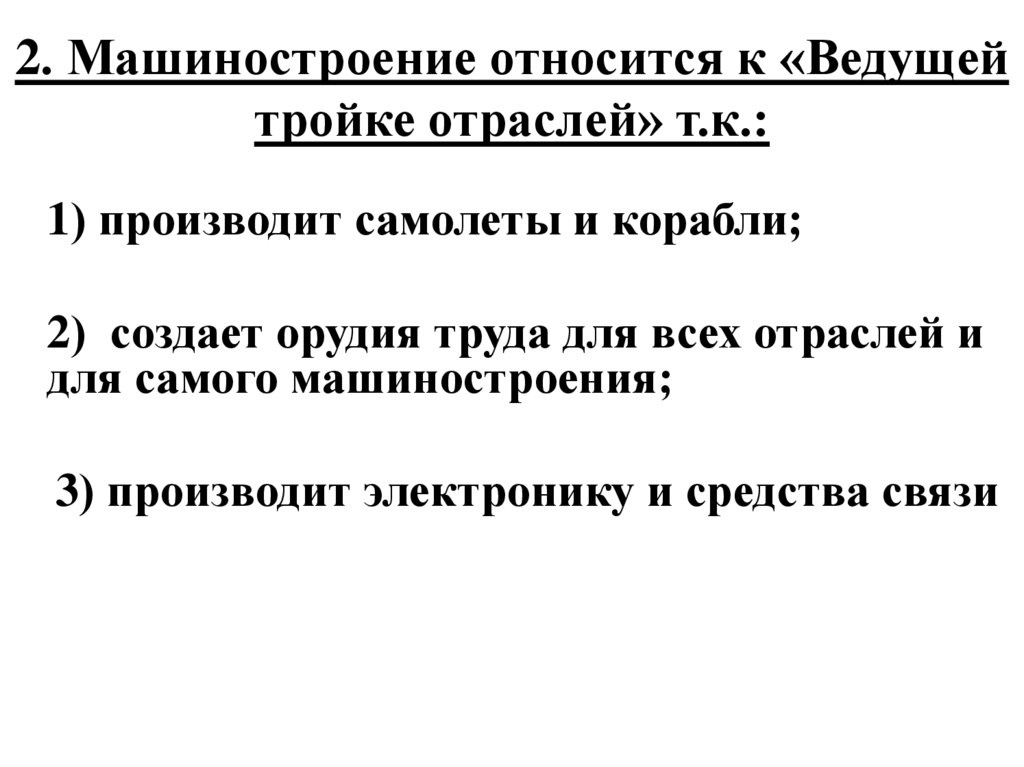 2. Машиностроение относится к «Ведущейтройке отраслей» т.к.: