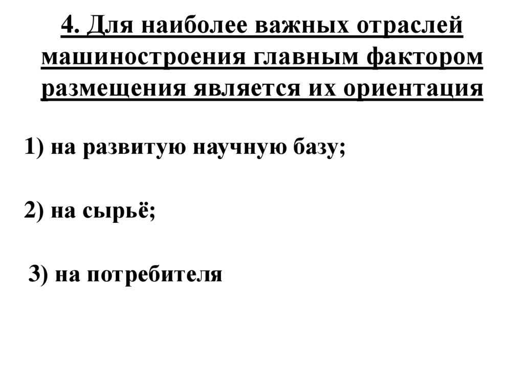 4. Для наиболее важных отраслеймашиностроения главным фактором