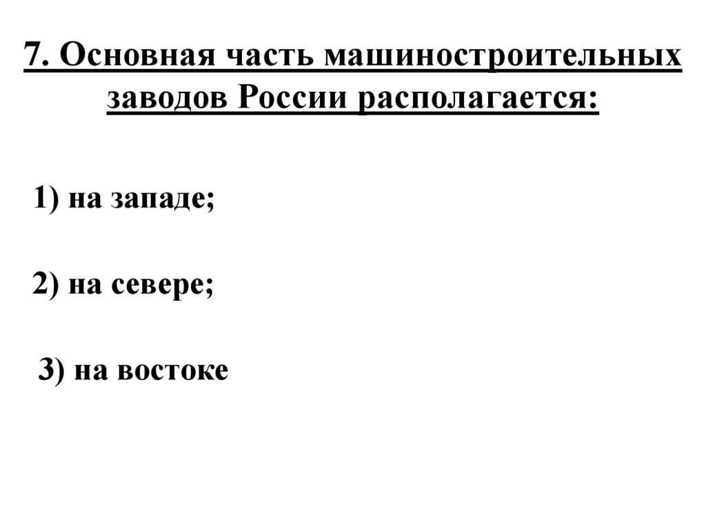 7. Основная часть машиностроительныхзаводов России располагается: