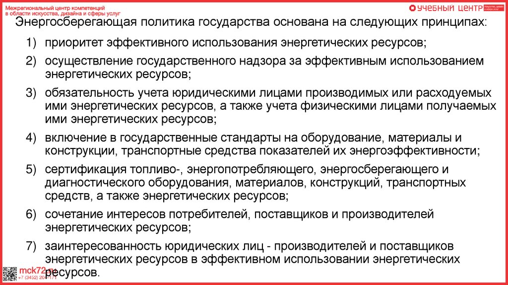 Энергосберегающая политика государства основана на следующих принципах:1) приоритет эффективного использования энергетических ресурсов;