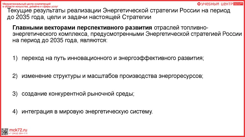 Главными векторами перспективного развития отраслей топливноэнергетического комплекса, предусмотренными Энергетической стратегией России