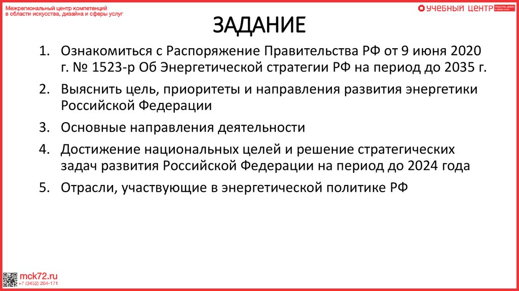 ЗАДАНИЕ1. Ознакомиться c Распоряжение Правительства РФ от 9 июня 2020
