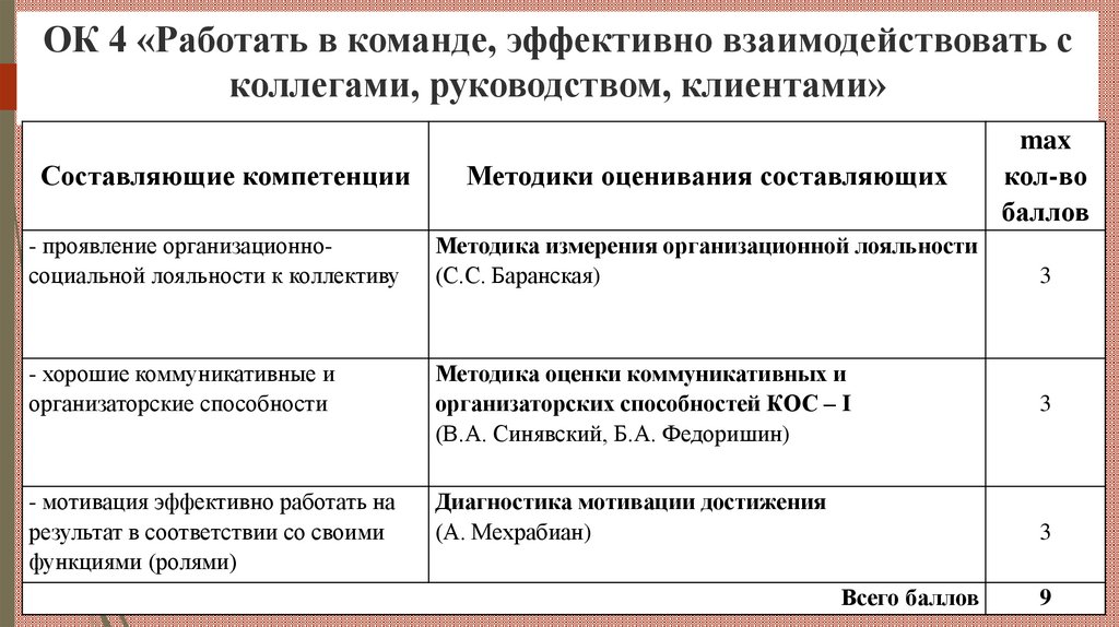 ОК 4 «Работать в команде, эффективно взаимодействовать сколлегами, руководством, клиентами»