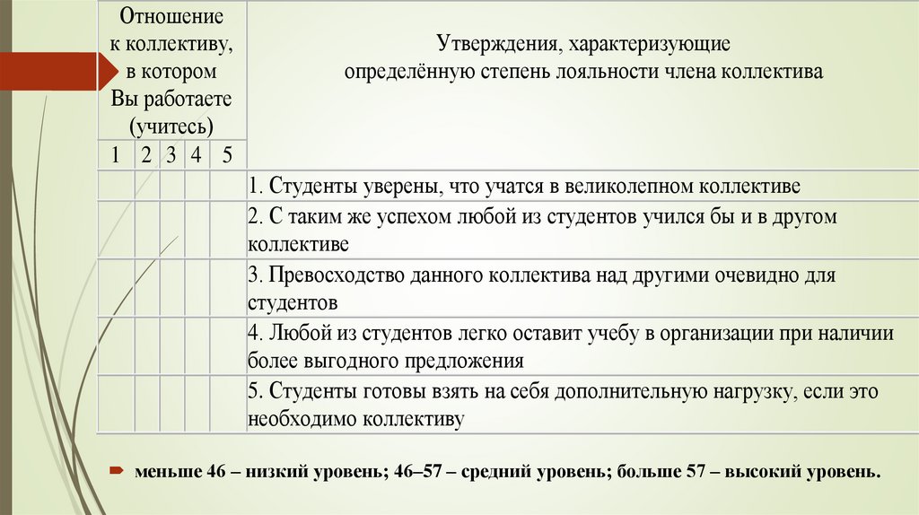 определённую степень лояльности члена коллектива