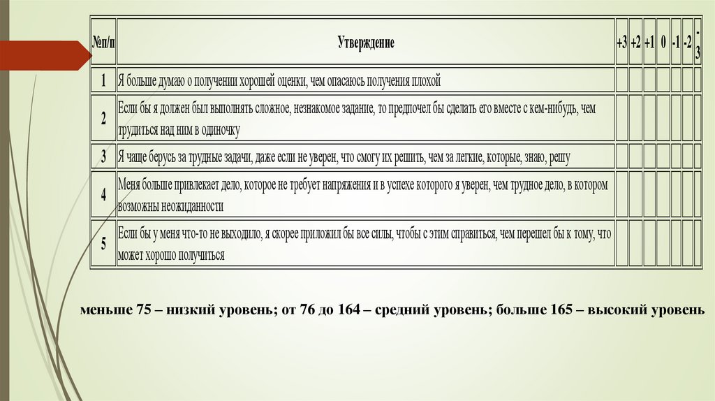 Методика измеряет результирующую тенденцию мотивации, то есть степень