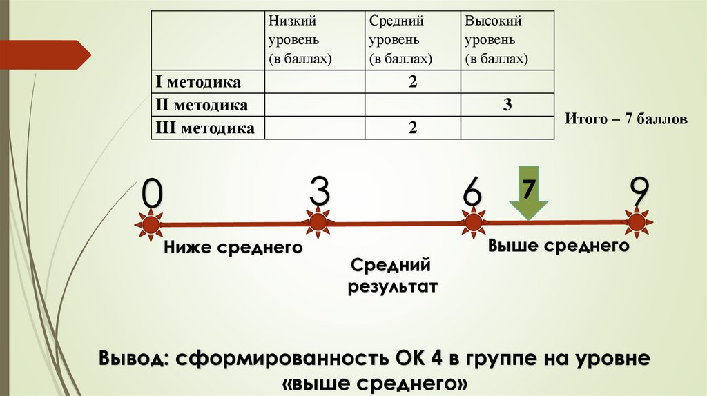 (оценивается в 2 балла); больше 57 – высокий уровень (оценивается в 3 балла).
