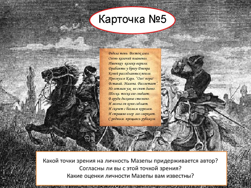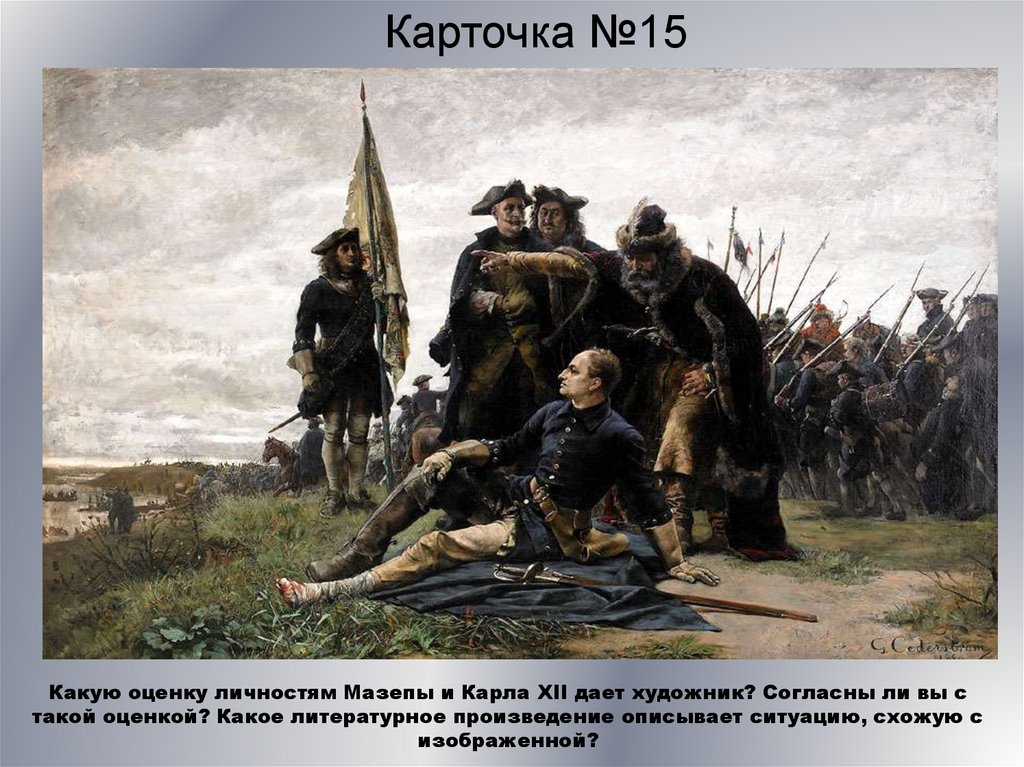 Карточка №15Какую оценку личностям Мазепы и Карла XII дает художник? Согласны ли вы с