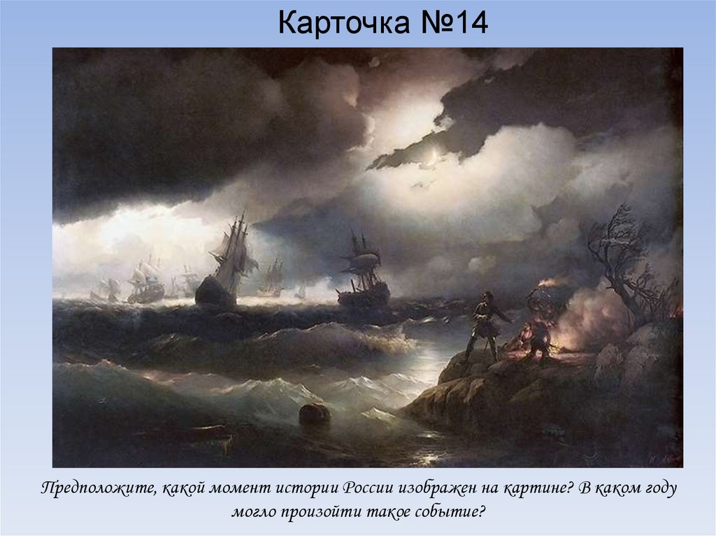 Карточка №14Предположите, какой момент истории России изображен на картине? В каком году