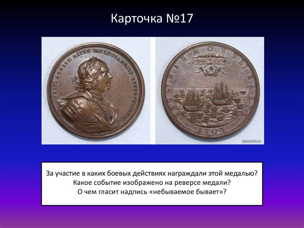Карточка №17За участие в каких боевых действиях награждали этой медалью?