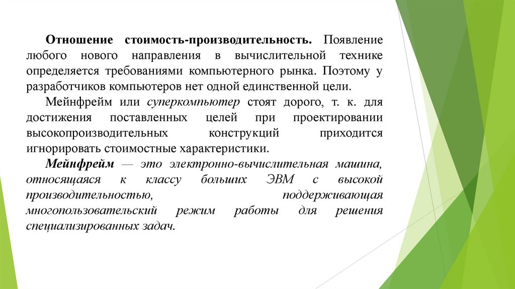 Отношение стоимость-производительность. Появлениелюбого нового направления в вычислительной технике