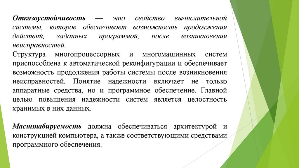 Отказоустойчивость — это свойство вычислительнойсистемы, которое обеспечивает возможность продолжения