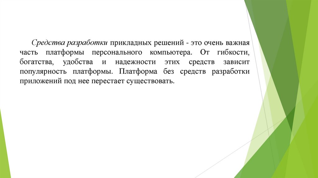 Средства разработки прикладных решений - это очень важнаячасть платформы персонального компьютера. От гибкости,