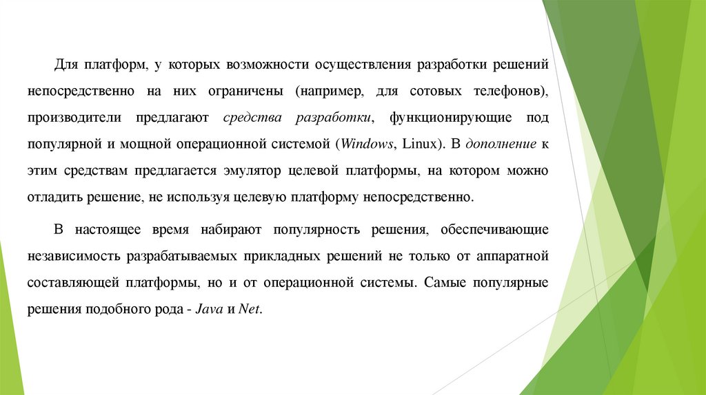 Для платформ, у которых возможности осуществления разработки решенийнепосредственно на них ограничены (например, для сотовых телефонов),