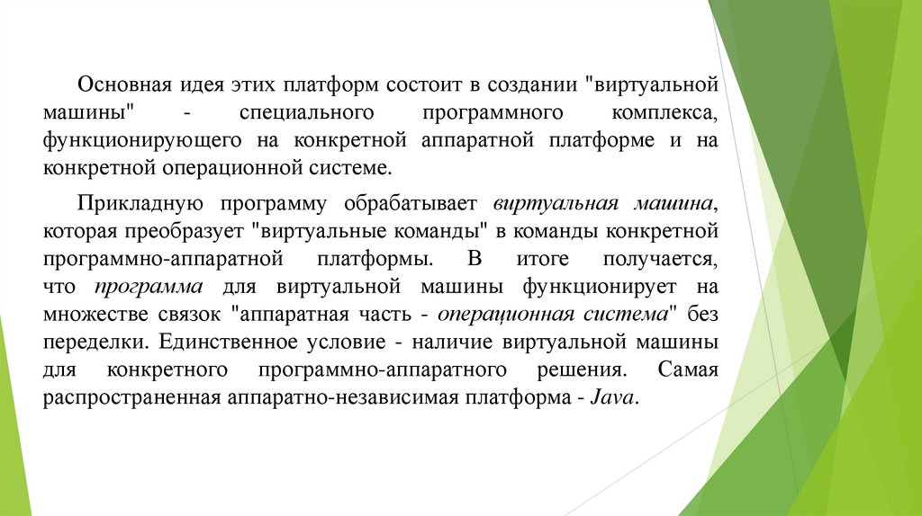Основная идея этих платформ состоит в создании "виртуальноймашины"