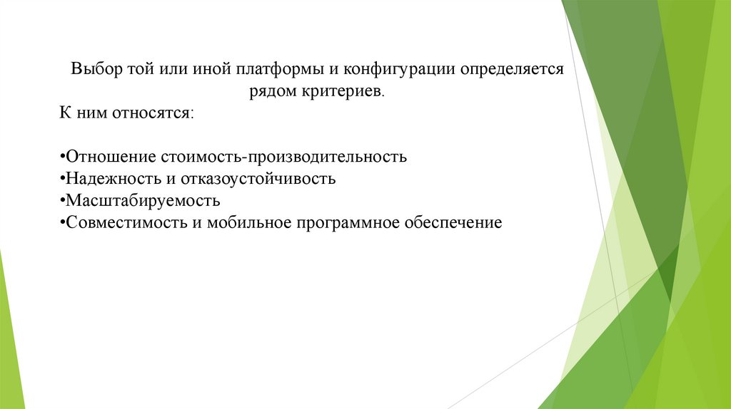 Выбор той или иной платформы и конфигурации определяетсярядом критериев.