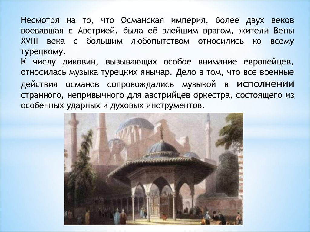 Несмотря на то, что Османская империя, более двух вековвоевавшая с Австрией, была её злейшим врагом, жители Вены
