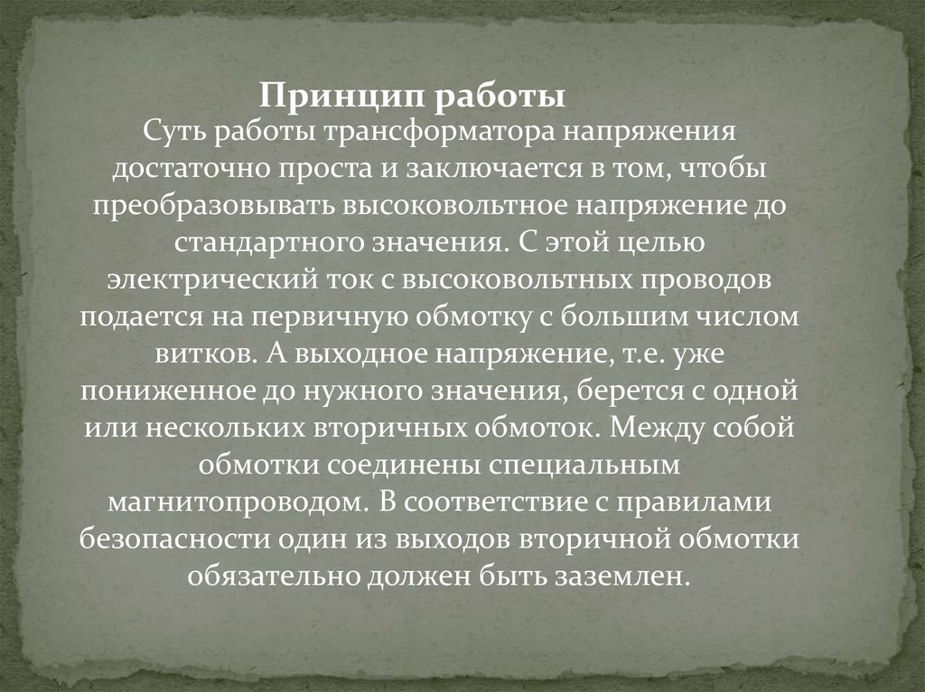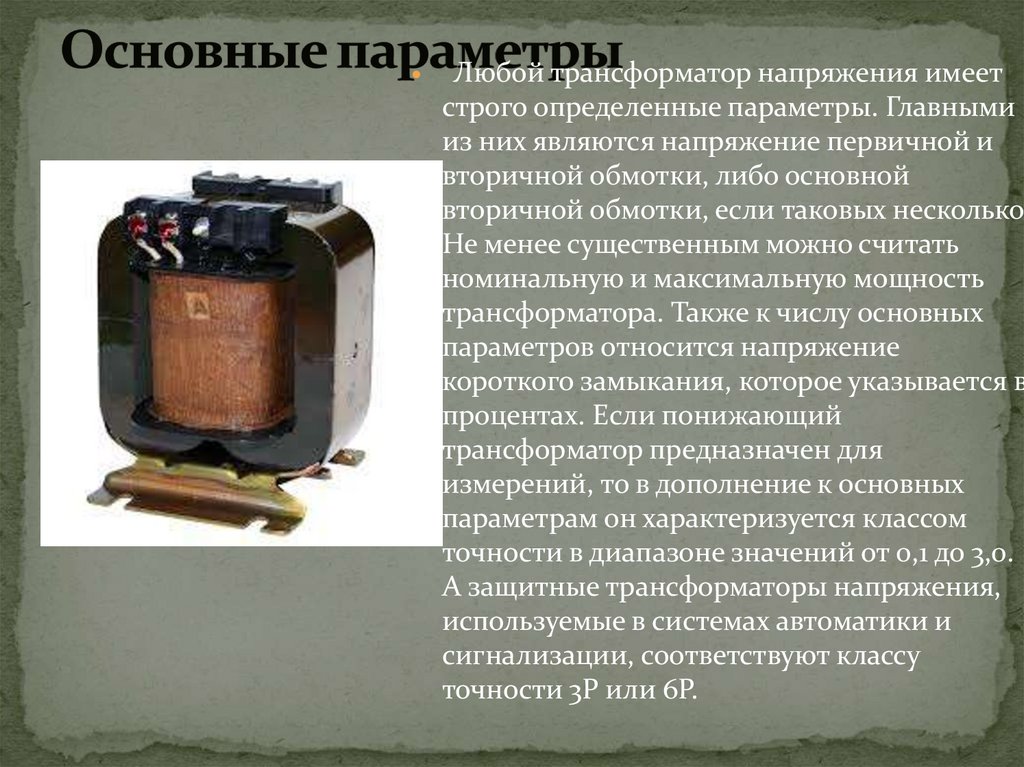 Любой трансформатор напряжения имеетстрого определенные параметры. Главными