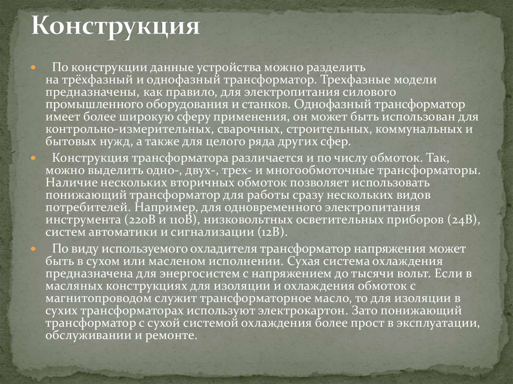 Конструкция трансформатора различается и по числу обмоток. Так,