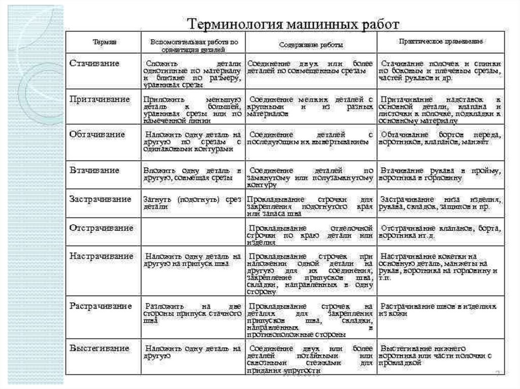 Виды машинных швов. Терминология машинных работ»