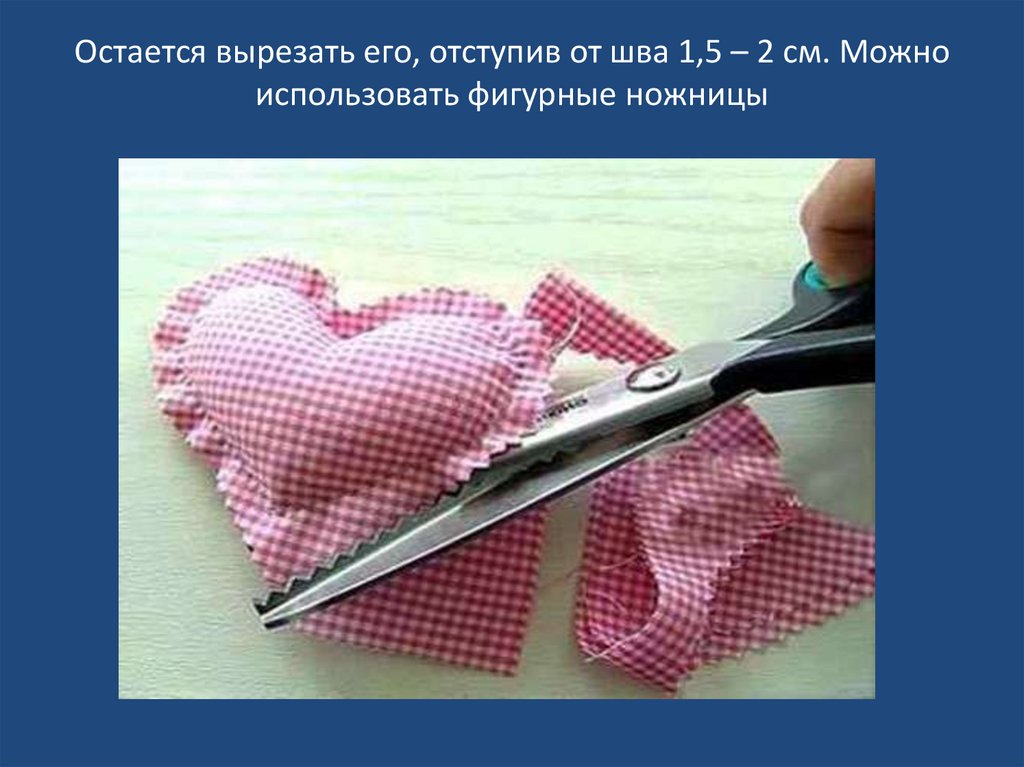 Остается вырезать его, отступив от шва 1,5 – 2 см. Можноиспользовать фигурные ножницы