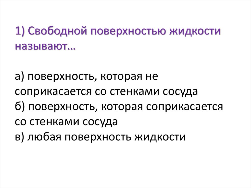 1) Свободной поверхностью жидкостиназывают…