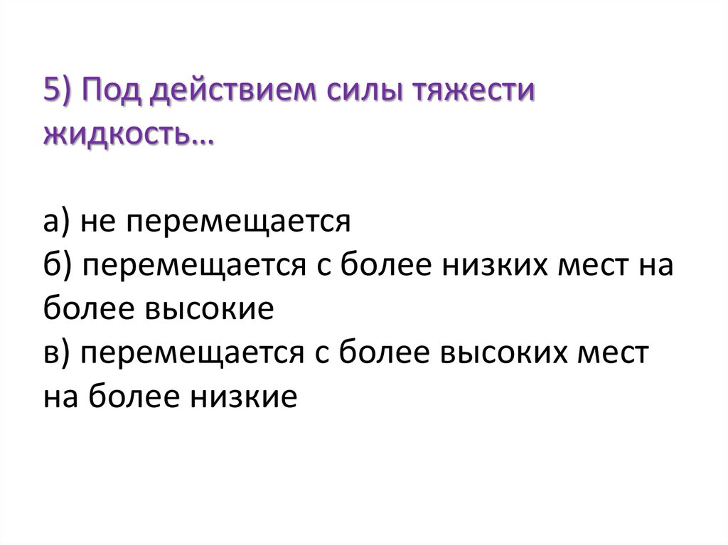 5) Под действием силы тяжестижидкость…