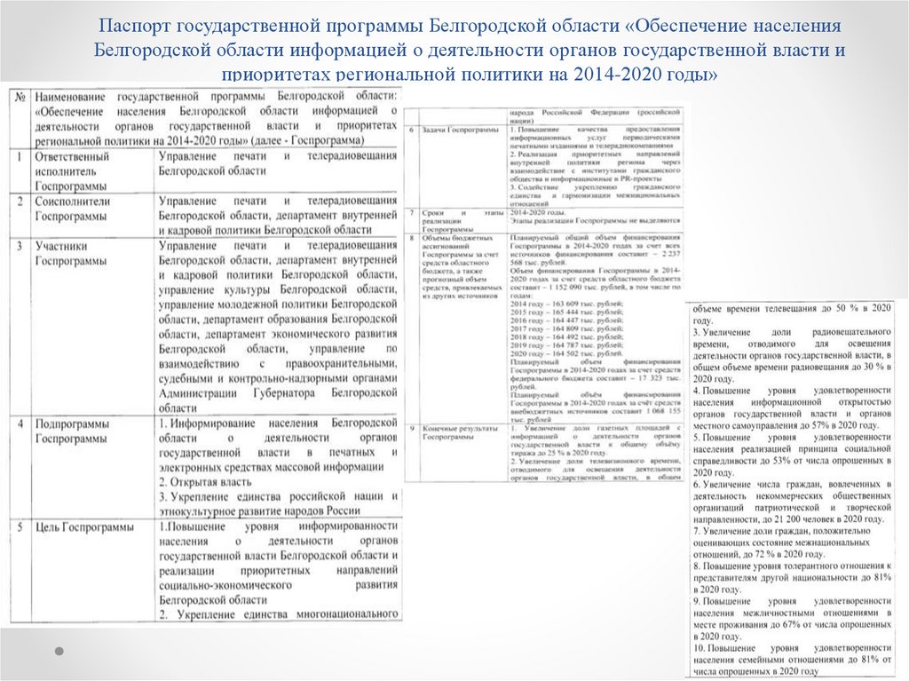 Паспорт государственной программы Белгородской области «Обеспечение населенияБелгородской области информацией о деятельности органов государственной власти и