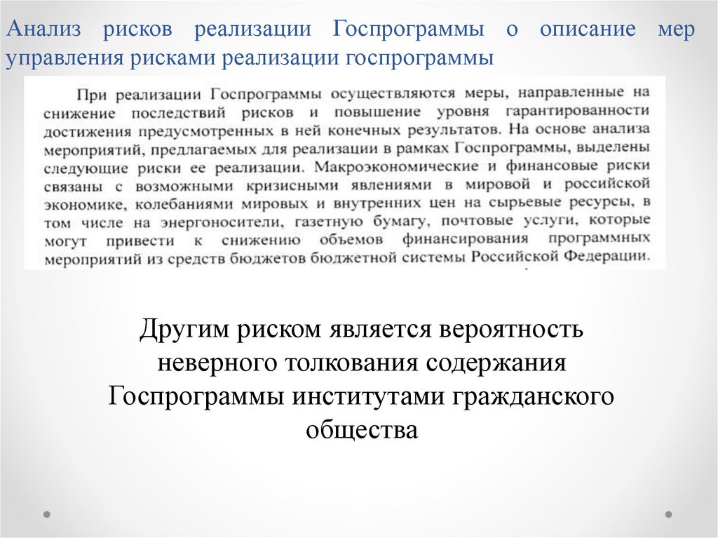 Анализ рисков реализации Госпрограммы о описание меруправления рисками реализации госпрограммы