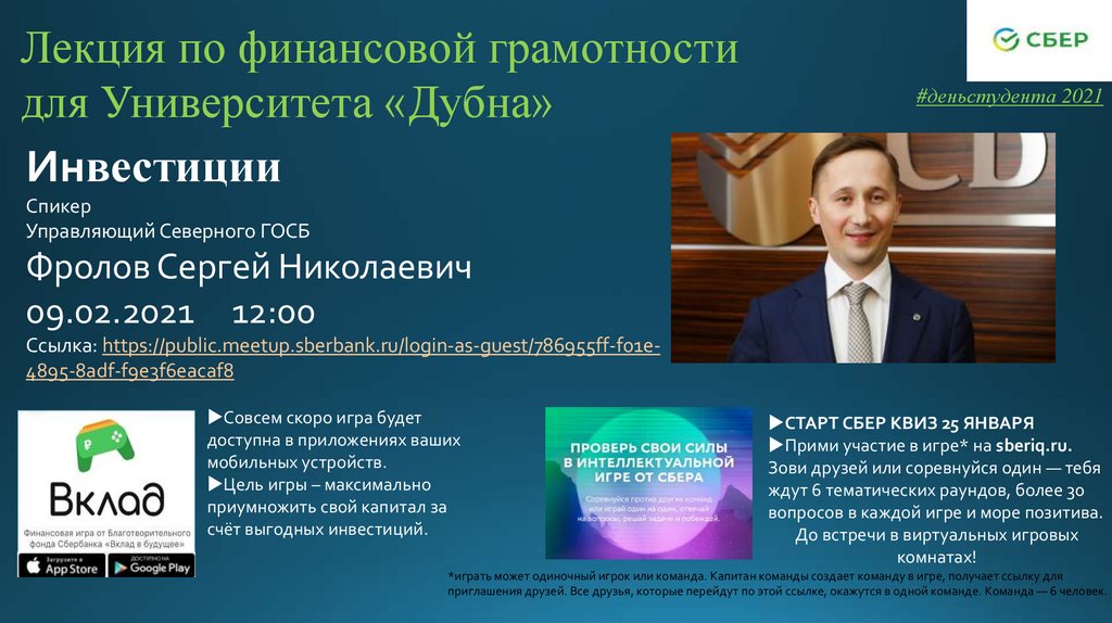 Лекция по финансовой грамотностидля Университета «Дубна»