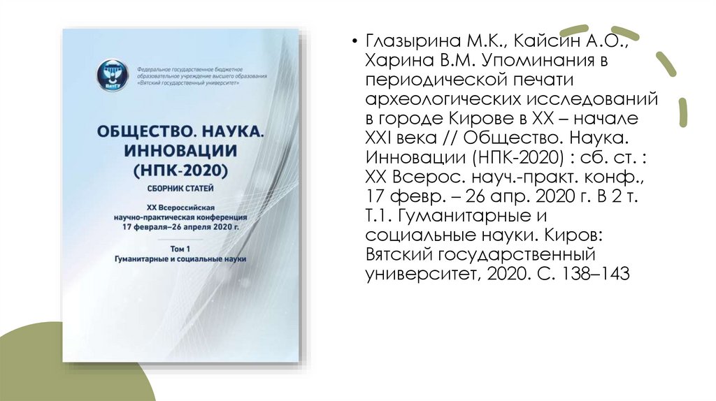 • Глазырина М.К., Кайсин А.О.,Харина В.М. Упоминания в