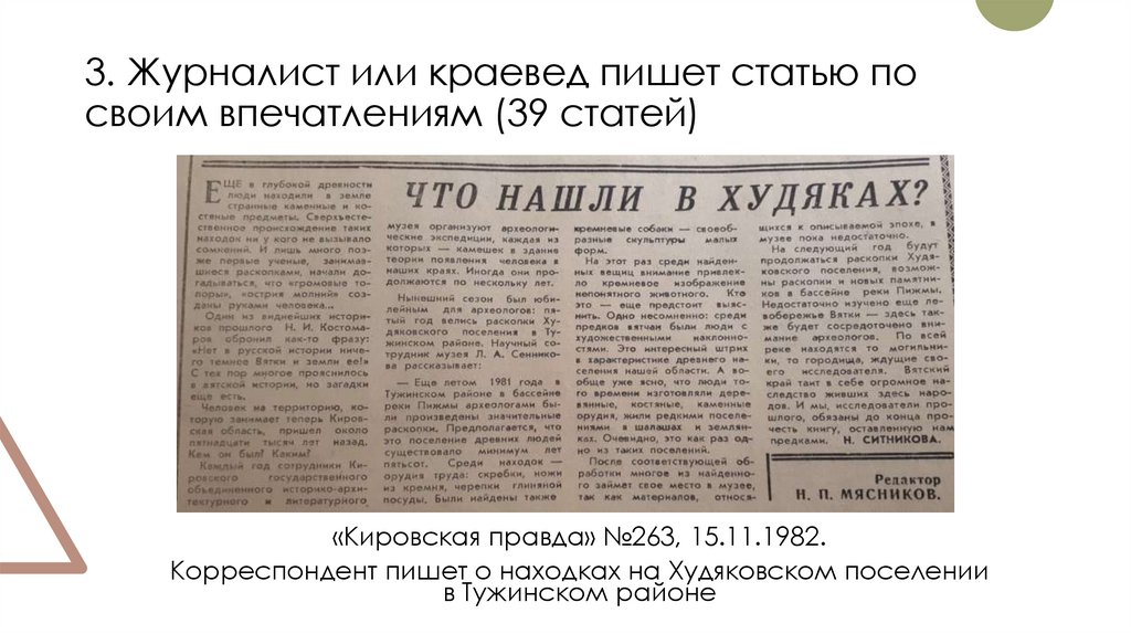 3. Журналист или краевед пишет статью посвоим впечатлениям (39 статей)