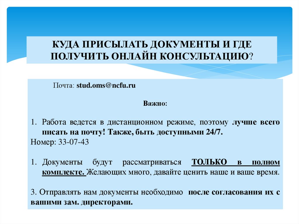 КУДА ПРИСЫЛАТЬ ДОКУМЕНТЫ И ГДЕПОЛУЧИТЬ ОНЛАЙН КОНСУЛЬТАЦИЮ?