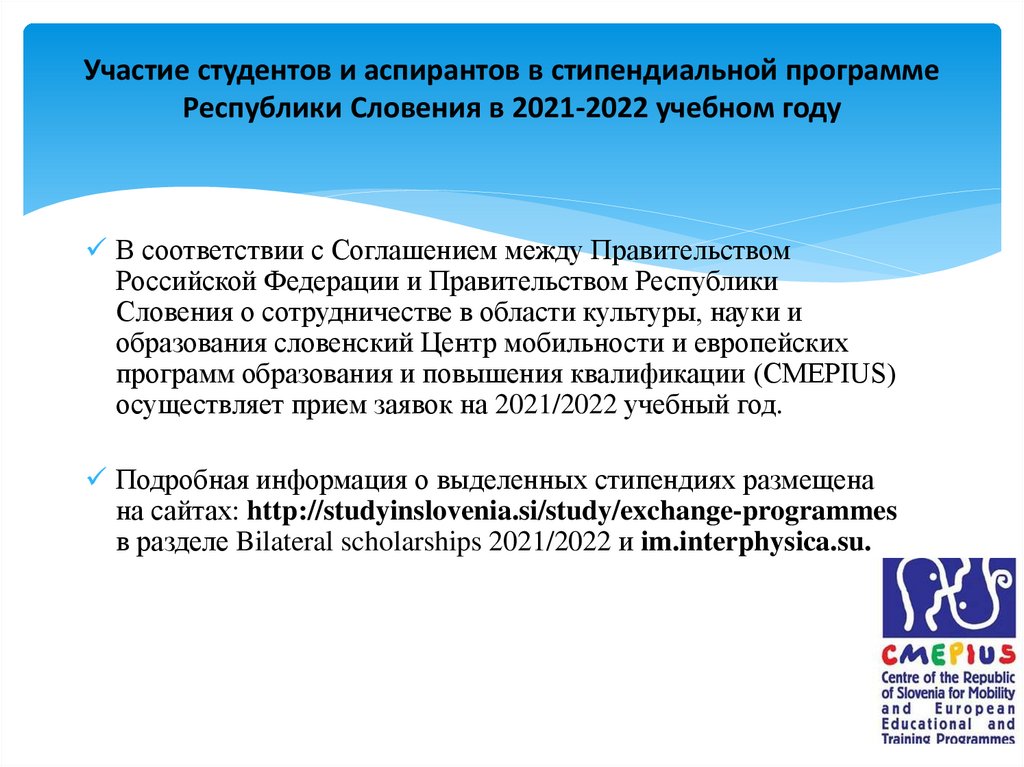 Российско-словенские стипендиидля студентов и аспирантов