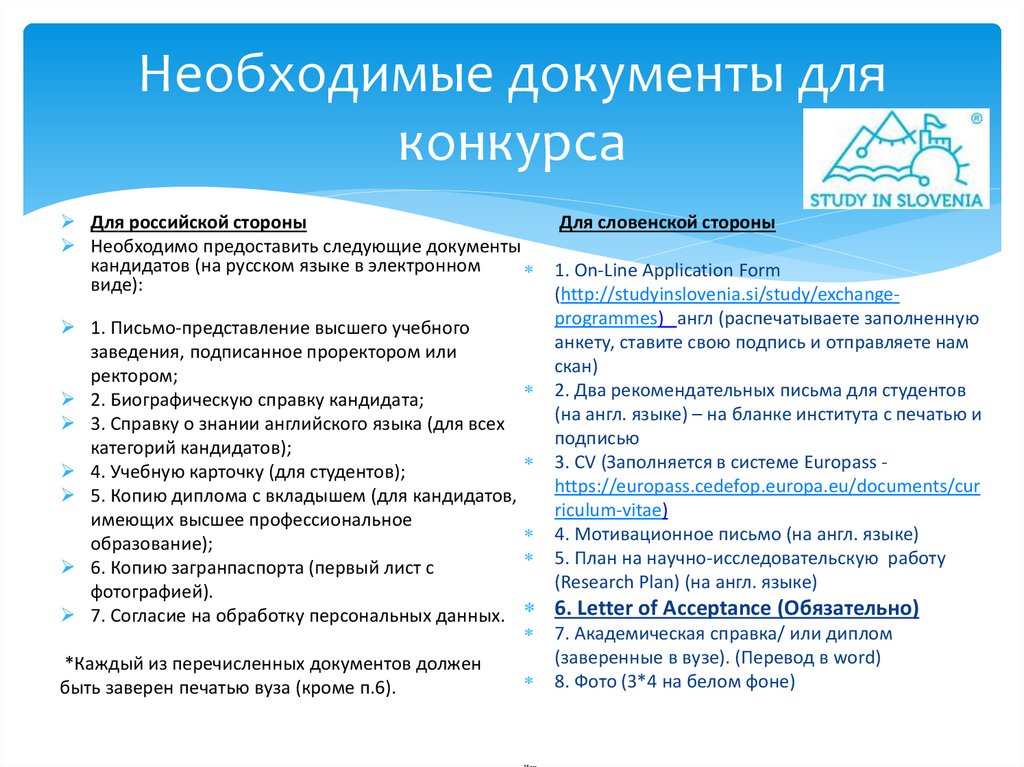 (http://studyinslovenia.si/study/exchangeprogrammes) англ (распечатываете заполненную