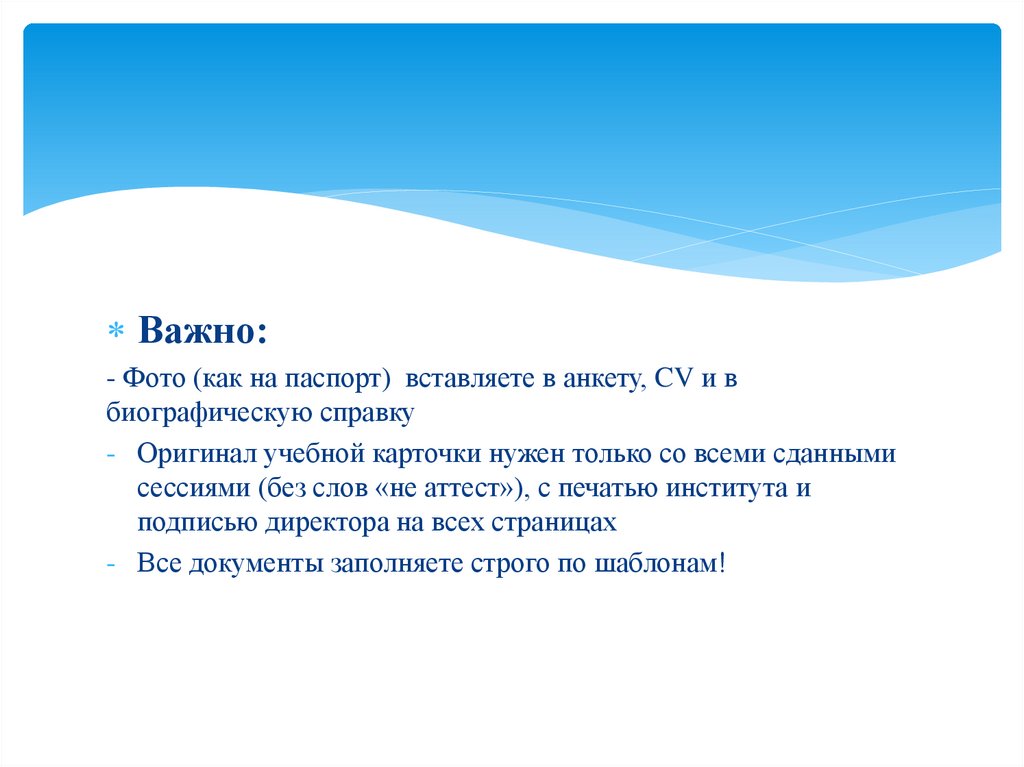 - Все документы заполняете строго по шаблонам!