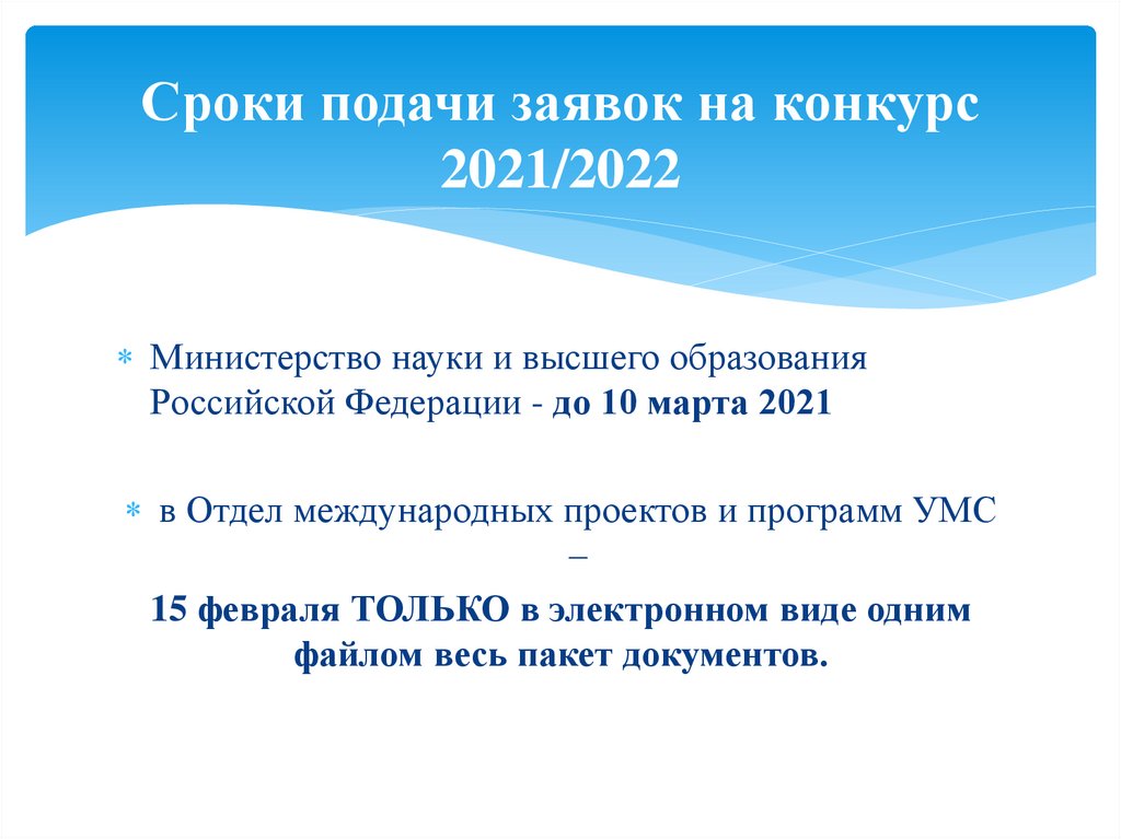 Сроки подачи заявок на конкурс2021/2022