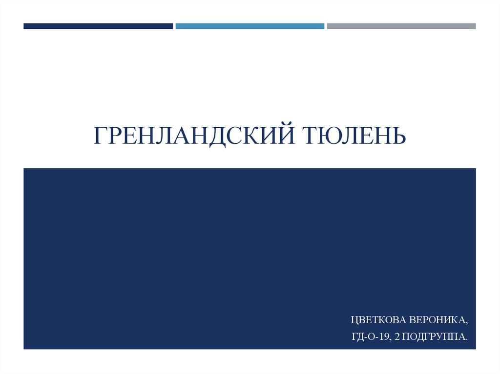 ГРЕНЛАНДСКИЙ ТЮЛЕНЬЦВЕТКОВА ВЕРОНИКА,