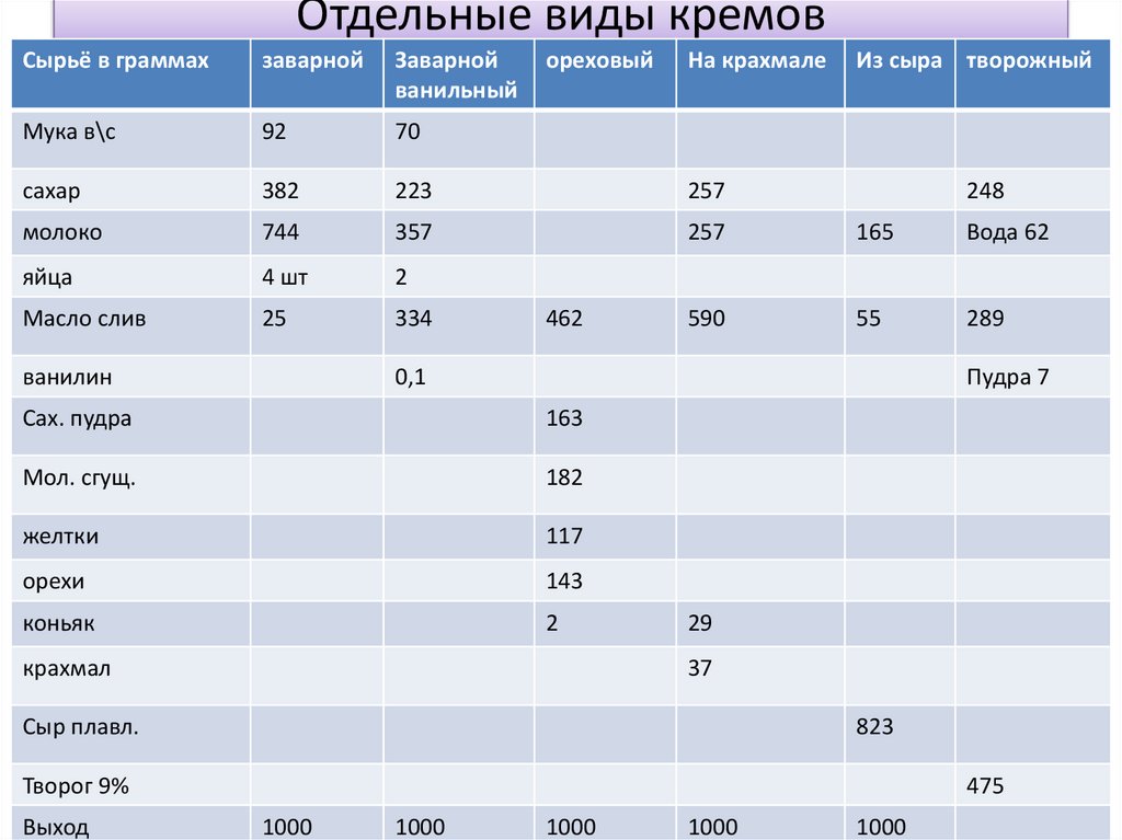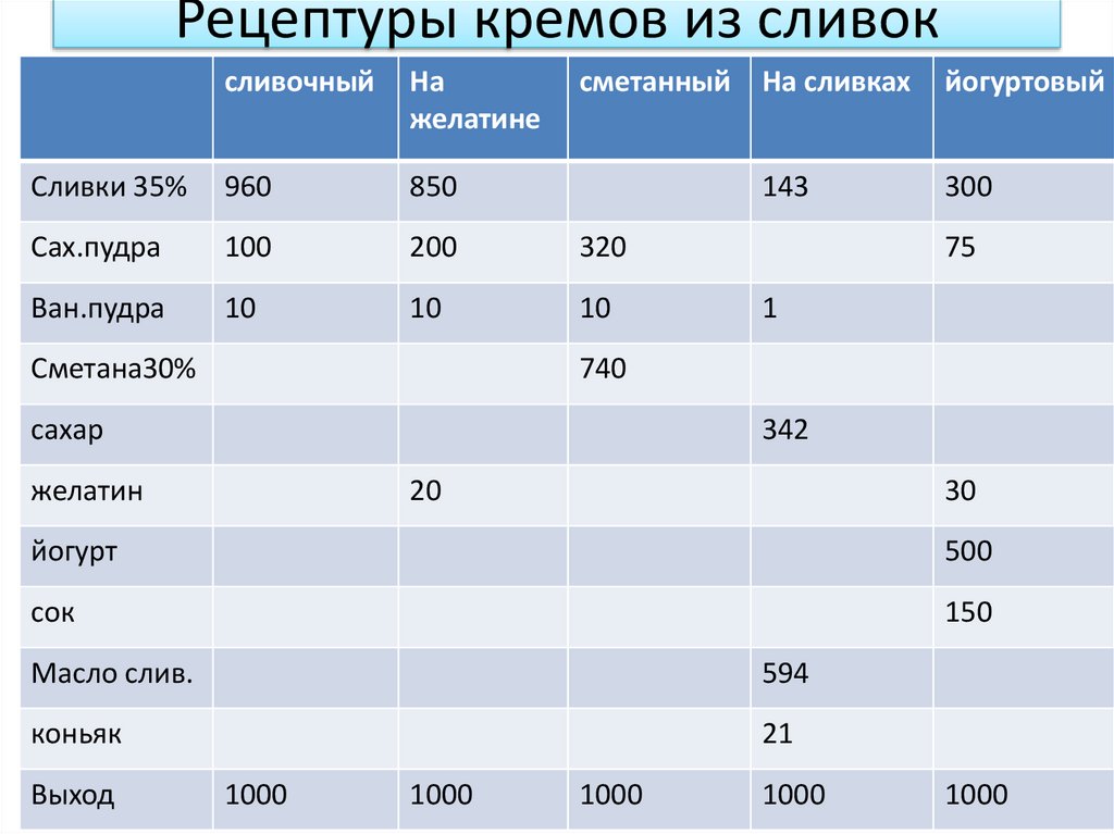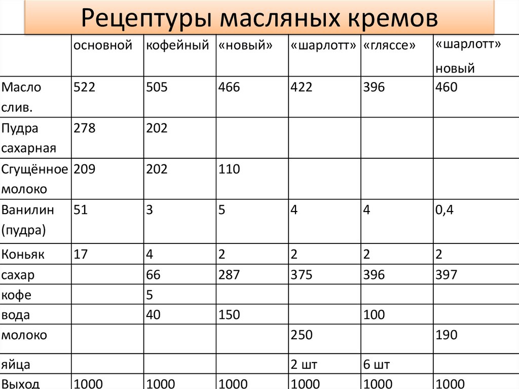 Кремы. Рецептуры масляных кремов основной кофейный «новый» «шарлотт»