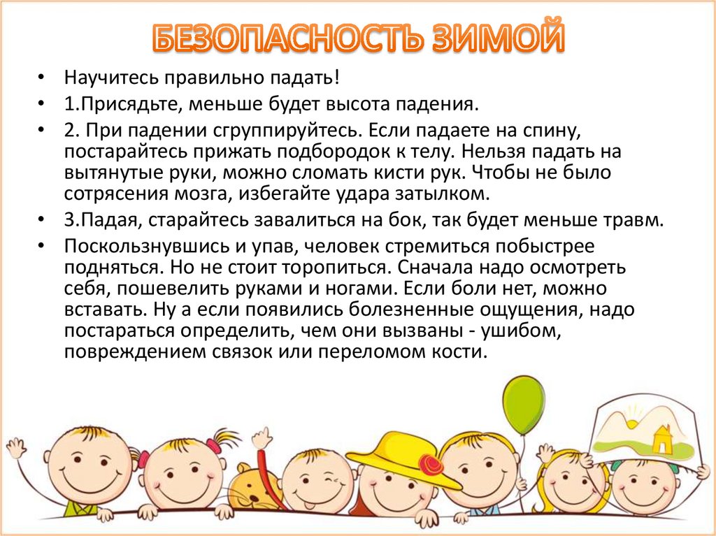 • 3.Падая, старайтесь завалиться на бок, так будет меньше травм.