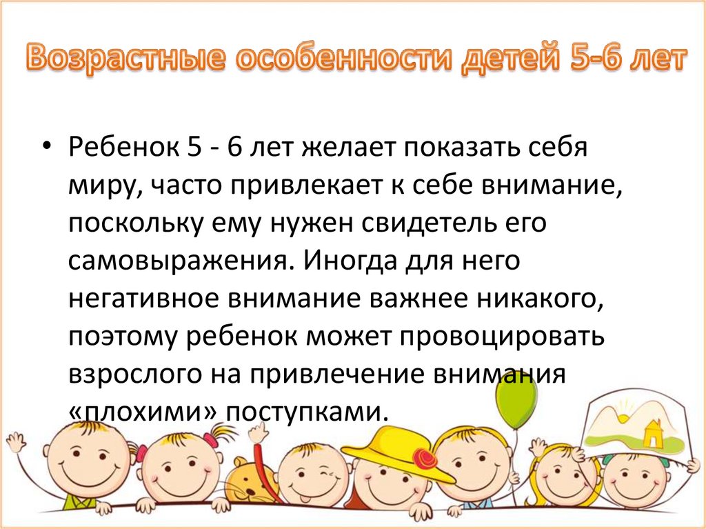 • Ребенок 5 - 6 лет желает показать себямиру, часто привлекает к себе внимание,
