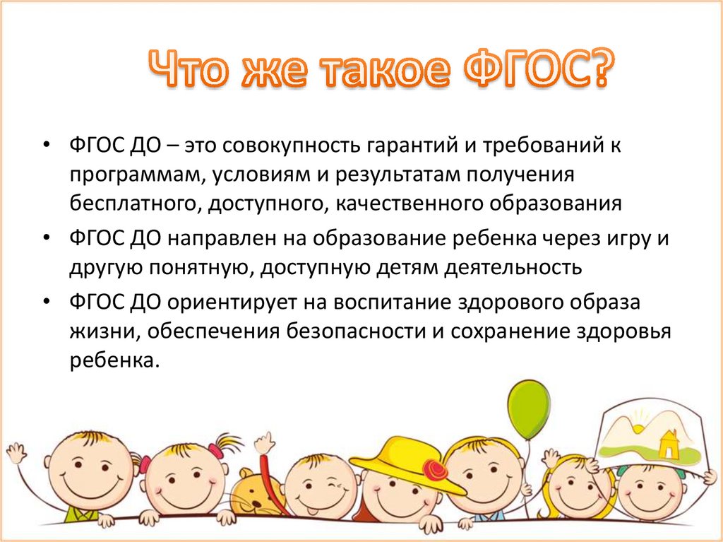 • ФГОС ДО – это совокупность гарантий и требований кпрограммам, условиям и результатам получения