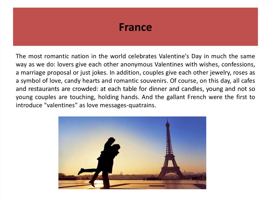 FranceThe most romantic nation in the world celebrates Valentine's Day in much the same