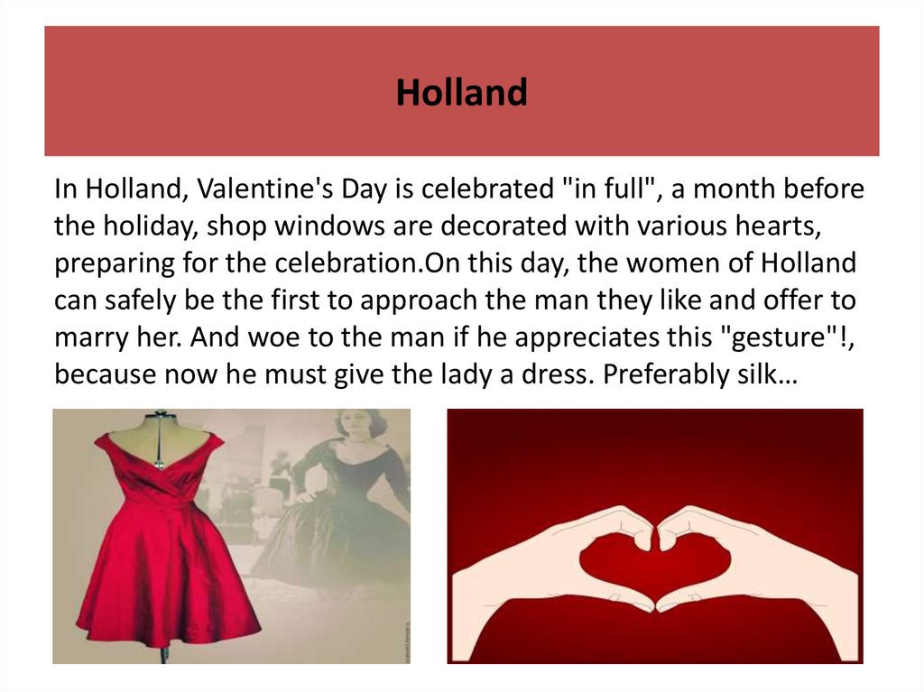 HollandIn Holland, Valentine's Day is celebrated "in full", a month before