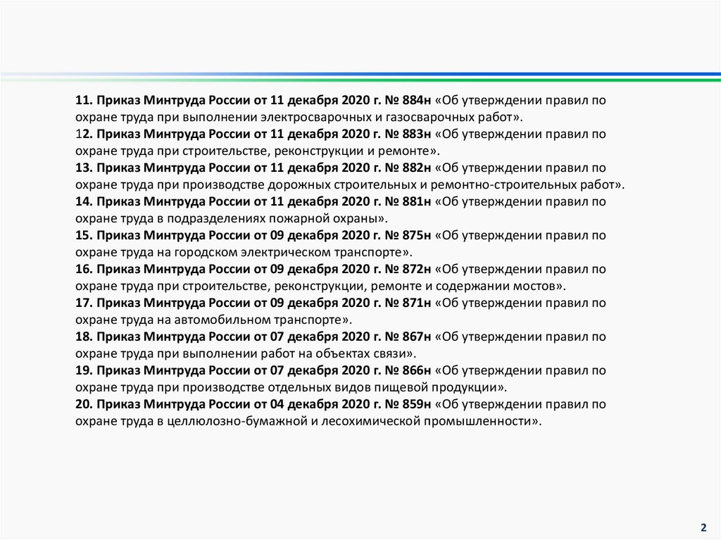 13. Приказ Минтруда России от 11 декабря 2020 г. № 882н «Об утверждении правил по