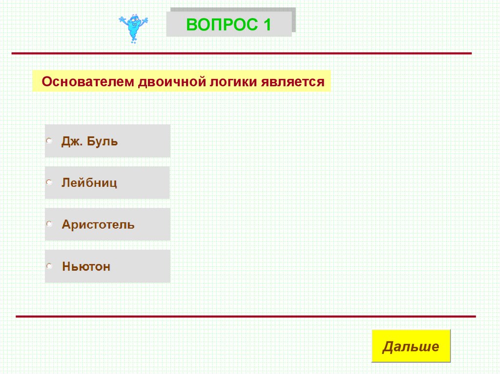 Инструкция для учеников по выполнению теста:1. Щелкните мышкой по нужному ответу, а затем нажмите кнопку