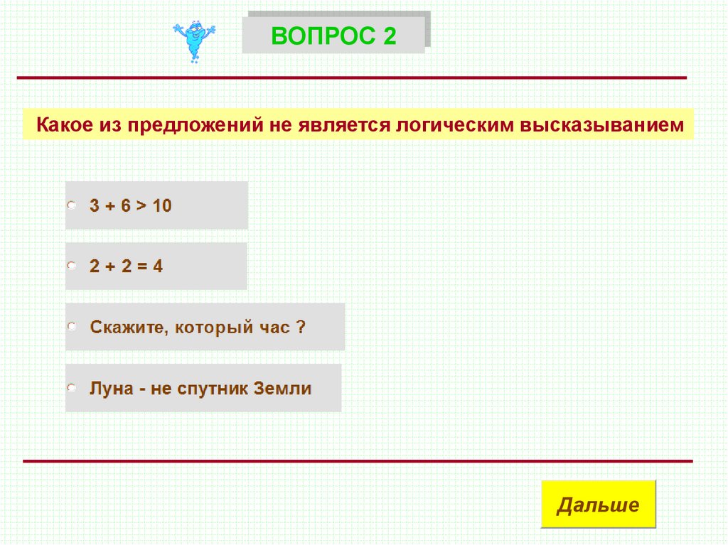 ВОПРОС 2Какое из предложений не является логическим высказыванием