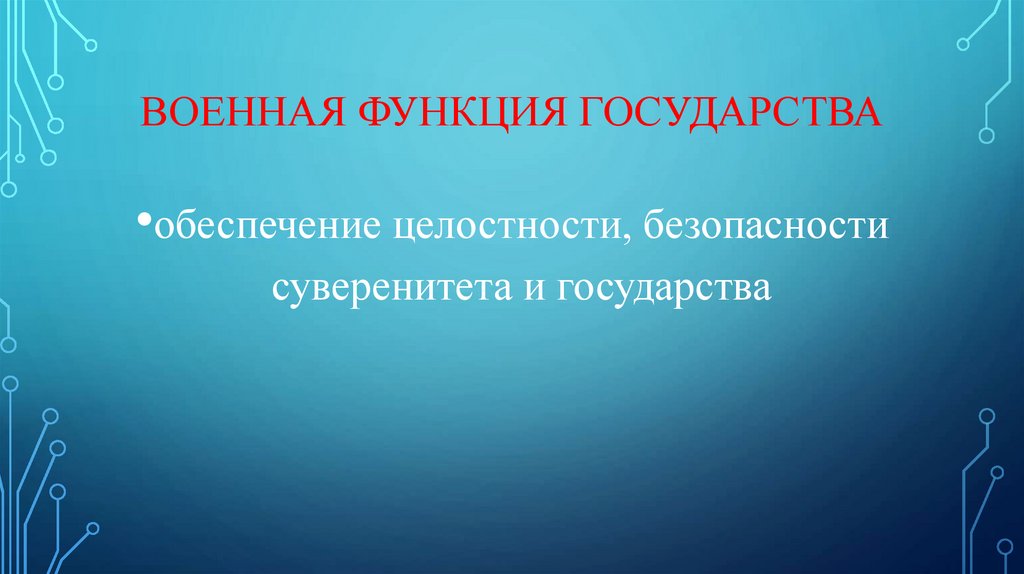 ВОЕННАЯ ФУНКЦИЯ ГОСУДАРСТВА•обеспечение целостности, безопасности
