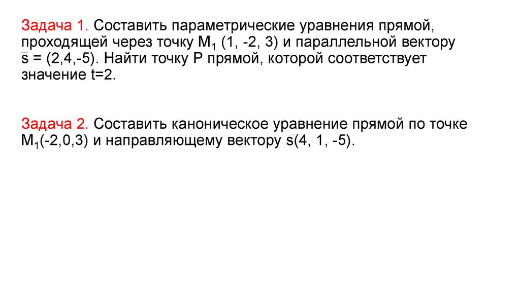 Задача 1. Составить параметрические уравнения прямой,проходящей через точку М1 (1, -2, 3) и параллельной вектору