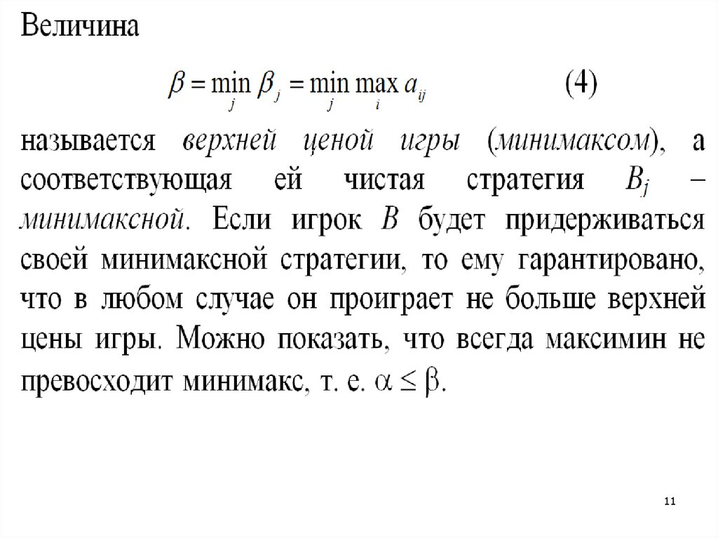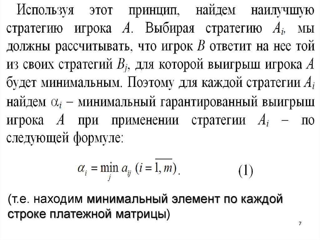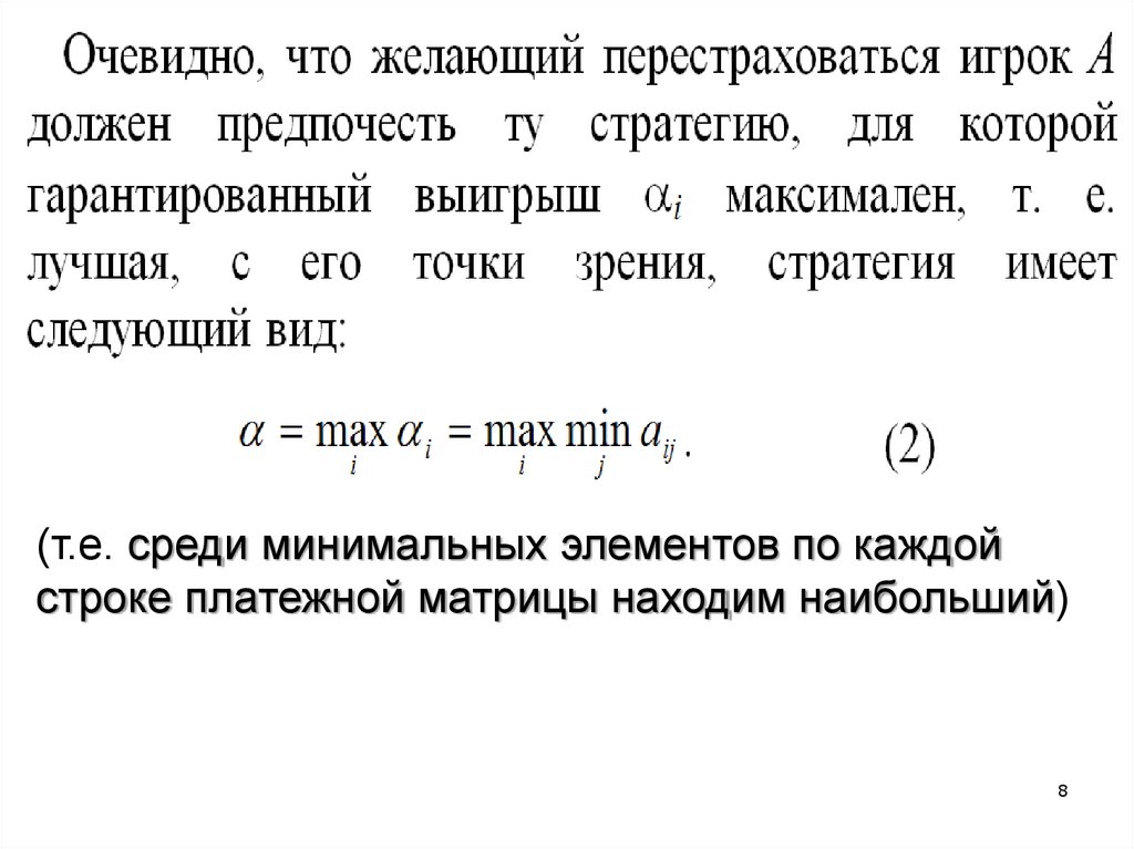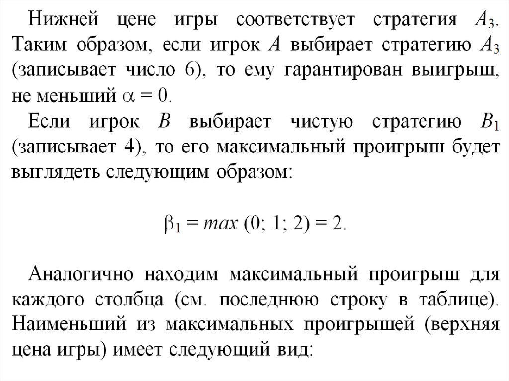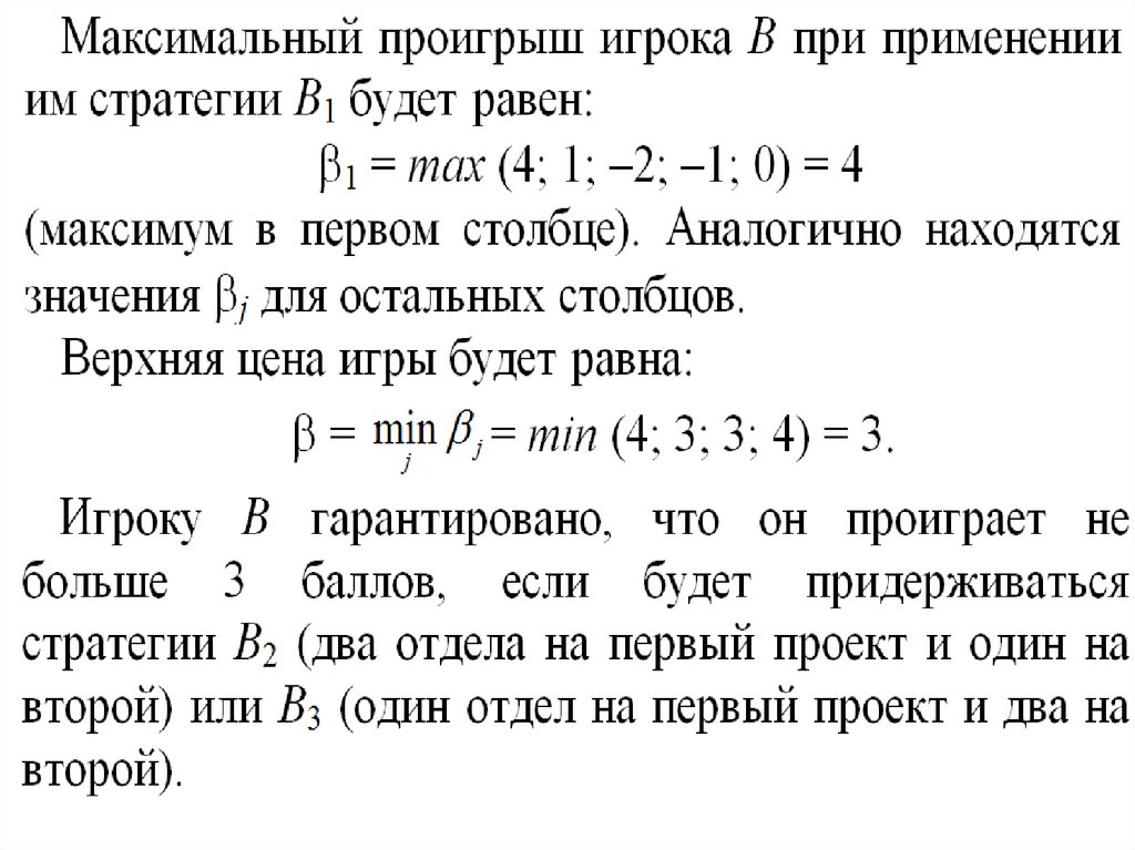 (т.е. среди минимальных элементов по каждойстроке платежной матрицы находим наибольший)