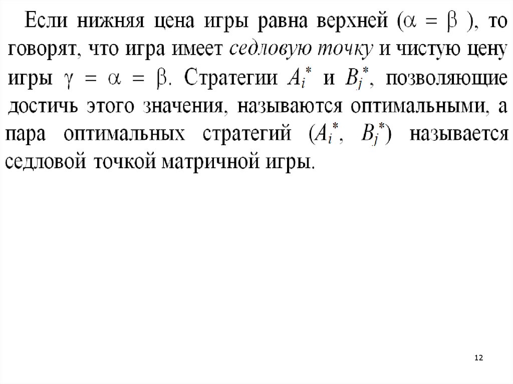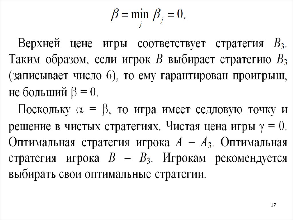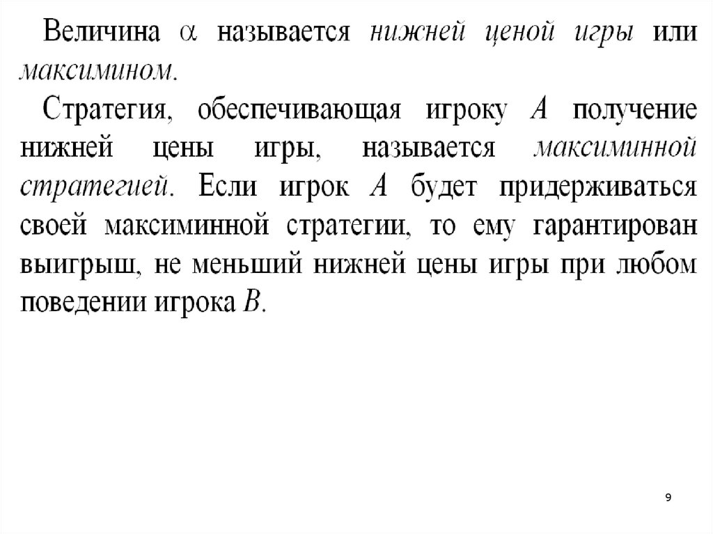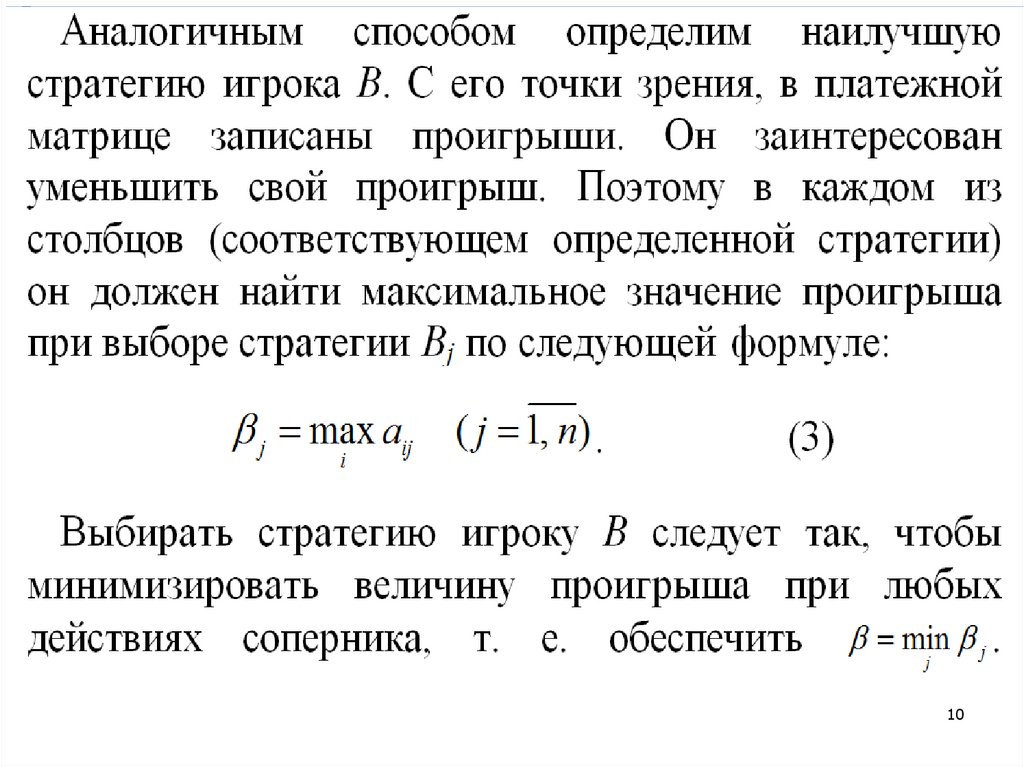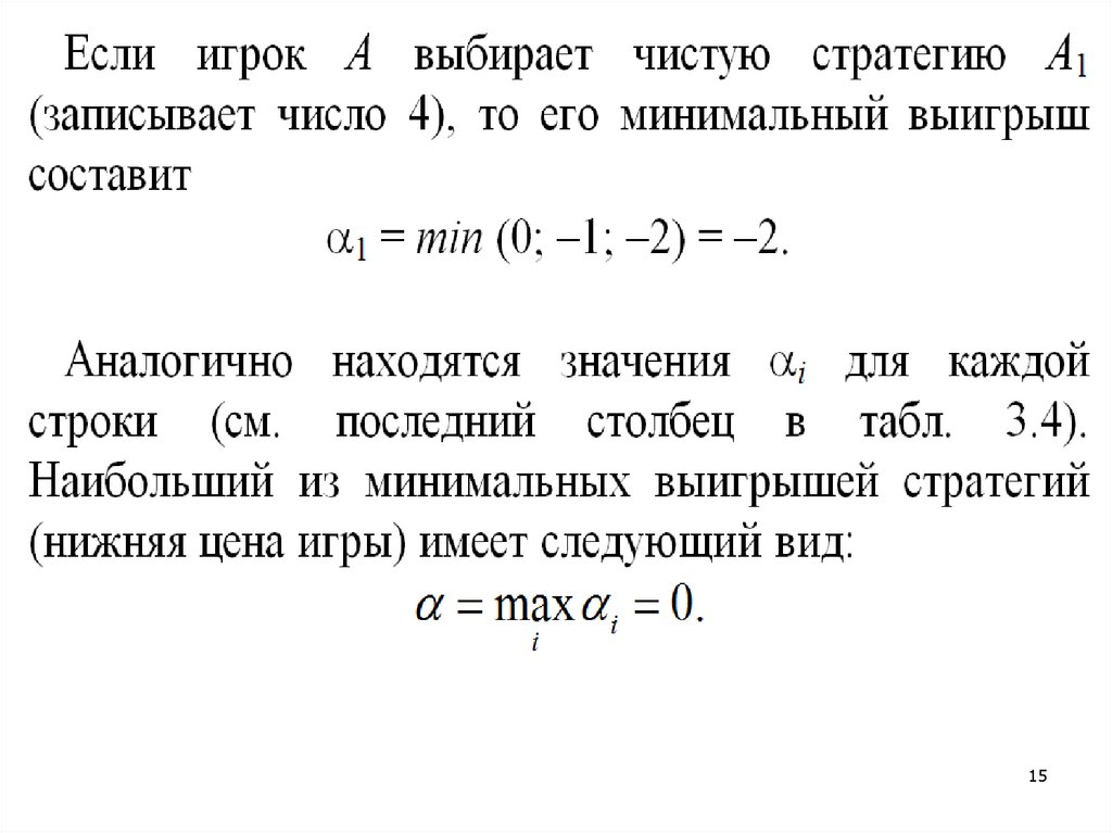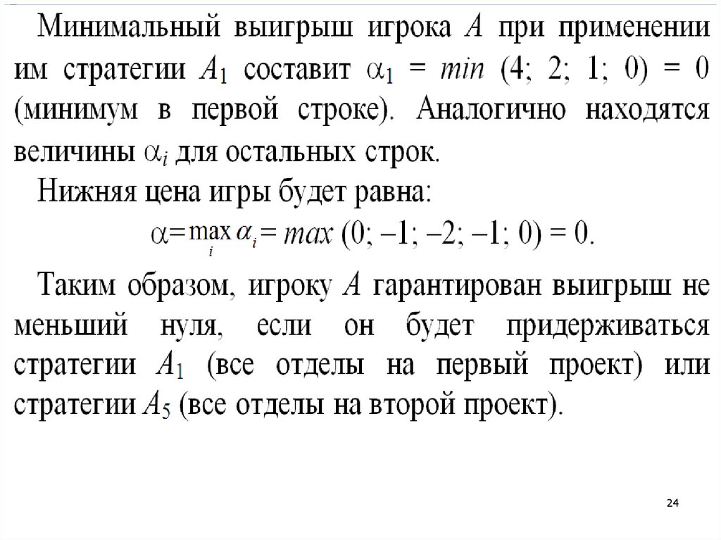 (т.е. среди минимальных элементов по каждойстроке платежной матрицы находим наибольший)